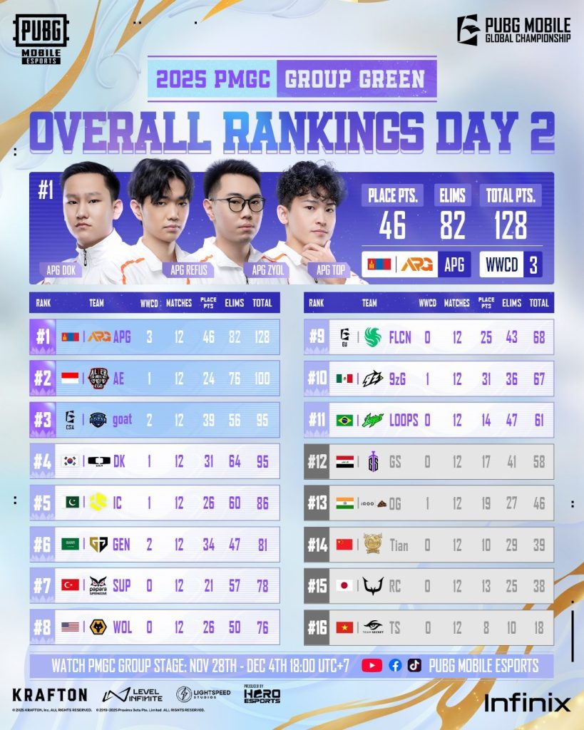 Ингэснээр тэд “PUBG Mobile Global Championship 2025” тэмцээний шөвгийн 16 багт багтаж, дэлхийн аваргын хамгийн чухал үе шат болох Grand Final-д шалгарсан юм. Хэсгээ тэргүүлснийхээ шагнал болгон баг 46,000 ам.долларын мөнгөн шагнал хүртэж байна.